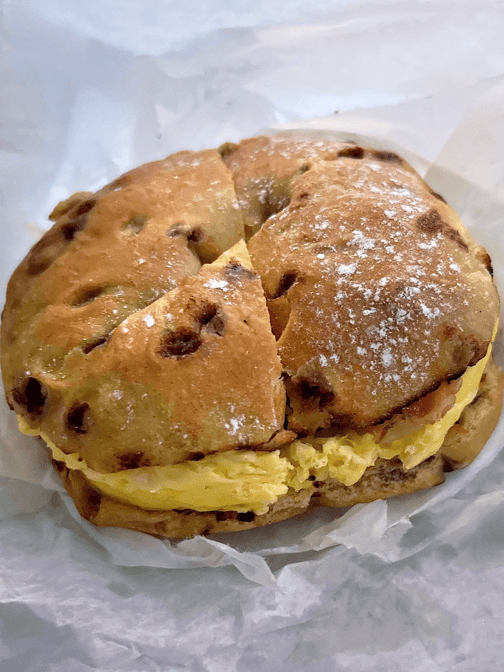Egg + Sausage + Bacon + Cheese of Your Choice Served on a French Toast Bagel with a side of Maple Syrup (Can Be Served on any Bagel, English Muffin, or Wrap)