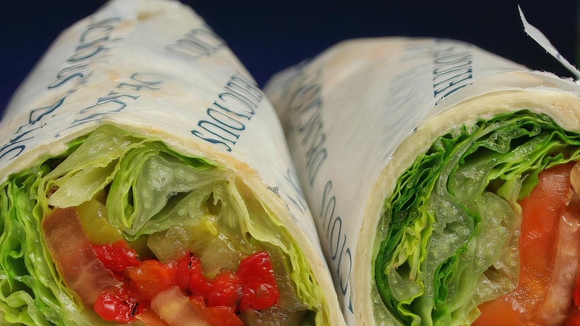 Hummus, Romaine Lettuce, Tomatoes, Roasted red Peppers, Diced Red Onions, and Pickles