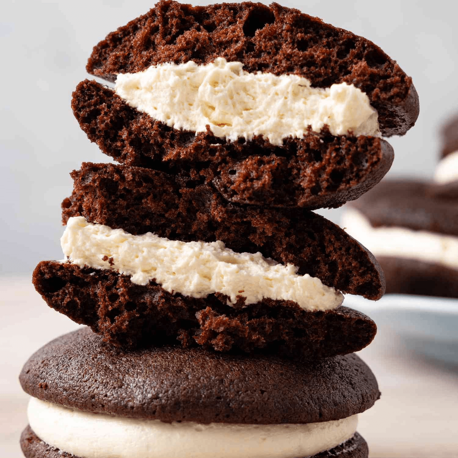 Layers of creamy peanut butter and crushed Oreo cookies, typically including a rich chocolate base and a hint of vanilla
